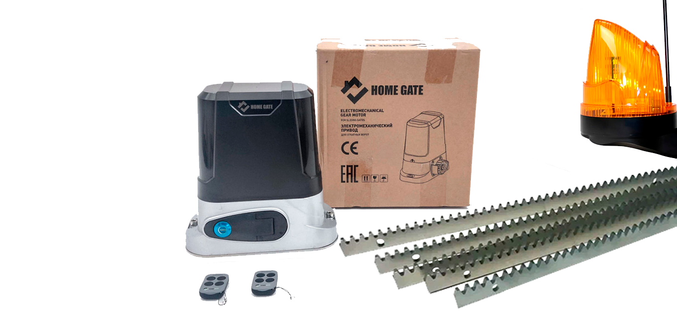Привод для откатных ворот HOME GATE LTM 600 + рейка 5 шт + лампа